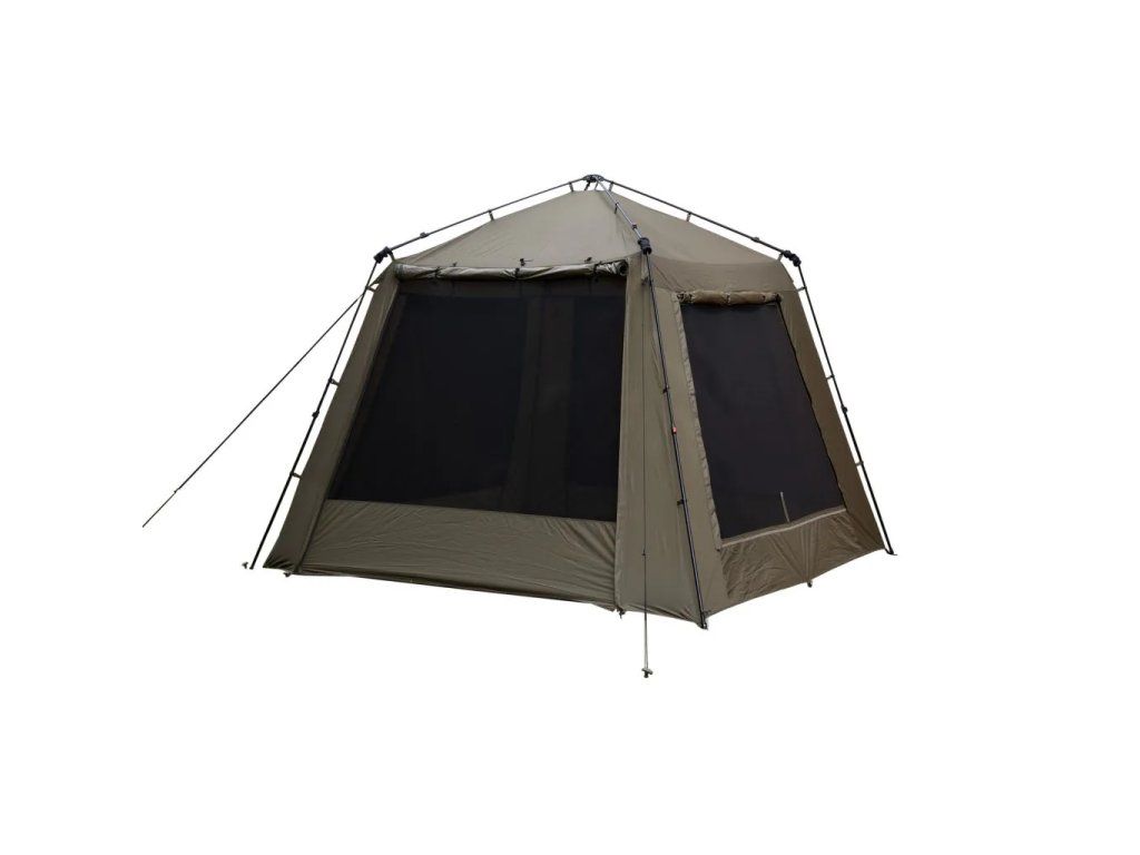 Multifunkční rybářský přístřešek Gazebo lze využít jako společenské centrum pro více rybářů, kuchařské zázemí nebo jako prostorný bivak. Nabízí dostatek prostoru pro každodenní nezbytné činnosti za jakéhokoliv počasí a navíc hromadu prostoru pro uložení vašeho dalšího rybářského vybavení. Hliníkové, teleskopické tyče Speedup poskytují robustní rám a umožňují, aby se přístřešek sbalil do kompaktní, pro jednu osobu zvládnutelnou velikost. Výška dveří byla posunuta co nejvýše, aby byla zajištěna maximální průchodnost. Dveře lze nastavit tak, aby byly plně otevřené, zavřené moskytiérou nebo plně uzavřené proti dešti. Kromě toho lze dveře použít pro vytvoření zastřešené verandy před samotným bivakem, která nabízí ochranu před ostrým sluncem. Další tři strany přístřešku můžete otevřít a srolovat nebo ponechat pouze moskytiéru. Každá ze stran je také vybavena systémem Adaptive Ventilation®, díky čemuž můžete udržovat v bivaku cirkulaci vzduchu, abyste snížili teplo a kondenzaci, a přitom se dovnitř nemohla dostat voda, když prší. Vlastnosti produktu velkokapacitní, multifunkční rybářský přístřešek ideální pro delší výpravy jednoduché postavení bivaku, které bez problému zvládne jedna osoba kotevní lana pro lepší stabilitu za nepříznivých povětrnostních podmínek technologie Adaptive Ventilation® hliníkové tyče Speedup vytvářejí snadno sestavitelný, teleskopický rám polyesterová látka Trakker 210D nabízí vodní sloupec 8000 mm výška dveří posunuta co nejvýše pro zajištění maximální průchodnosti možnost nastavit dveře jako plně otevřené, zavřené moskytiérou nebo plně uzavřené dveře lze použít pro vytvoření zastřešené verandy pro ochranu před ostrým sluncem (sadu tyčí pro vytvoření verandy lze dokoupit samostatně) další tři strany lze otevřít a srolovat nebo ponechat moskytiéru vnitřní, úložná kapsa pro uložení drobností dodáváno v odolné tašce na zip NXG 600D balení obsahuje bivak, T-kolíky, 4 kotevní lana a robustní tašku Technické parametry Materiál: 210D Polyester Vodní sloupec: 8000 mm Hmotnost: cca 9,8 kg (bez kolíků a tašky) Hmotnost kolíků a tašky: 2,05 kg Rozměry: cca 275×275×200 cm (D x Š x V) Transportní rozměr: 120×23×23 cm (D x Š x V) Přístřešek lze zakoupit ve velikostech: standard (základna 2,75×2,75 m; výška 2 m; maximální výška otevření dveří 1,8m) XL (základna 3,05 × 3,05 m; výška 3 m; maximální výška otevření dveří 2 m) Podlážka a sada dveřních tyčí jsou k dispozici samostatně.