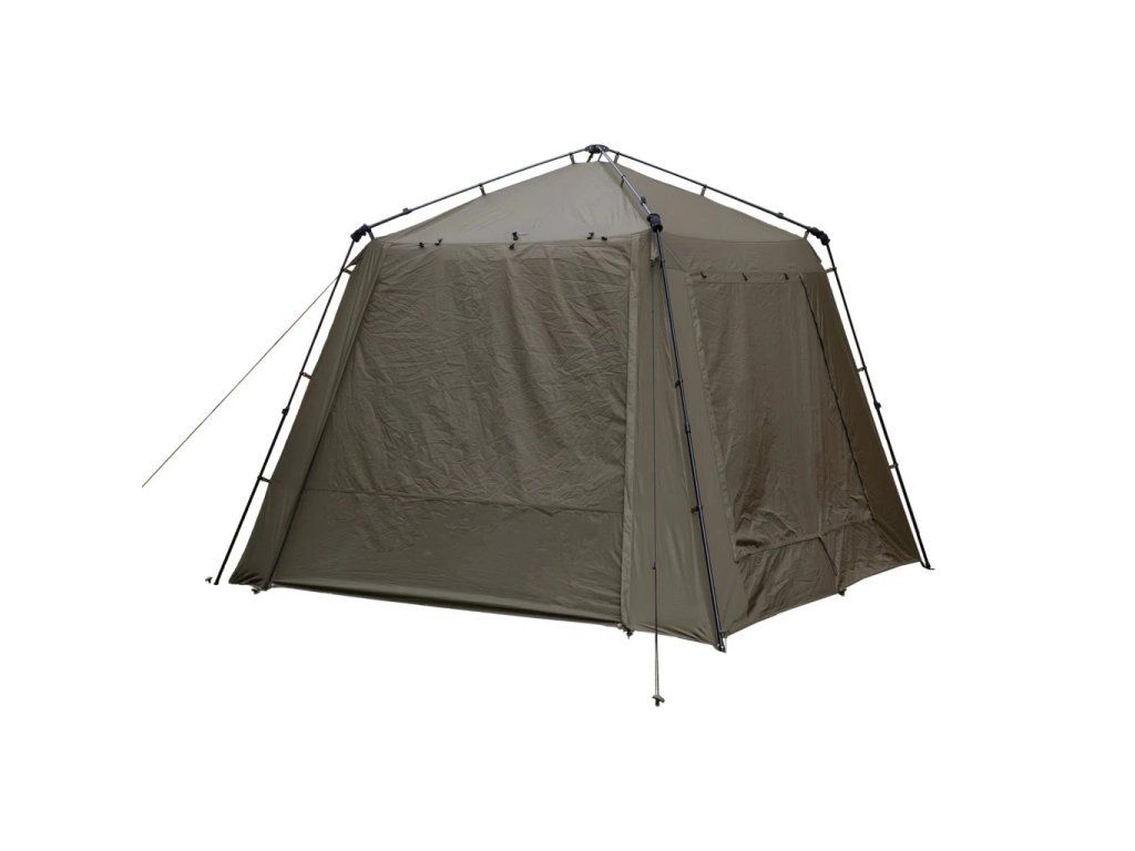 Multifunkční rybářský přístřešek Gazebo XL lze využít jako společenské centrum pro více rybářů, kuchařské zázemí nebo jako prostorný bivak. Nabízí dostatek prostoru pro každodenní nezbytné činnosti za jakéhokoliv počasí a navíc hromadu prostoru pro uložení vašeho dalšího rybářského vybavení. Hliníkové, teleskopické tyče Speedup poskytují robustní rám a umožňují, aby se přístřešek sbalil do kompaktní, pro jednu osobu zvládnutelnou velikost. Výška dveří byla posunuta co nejvýše, aby byla zajištěna maximální průchodnost. Dveře lze nastavit tak, aby byly plně otevřené, zavřené moskytiérou nebo plně uzavřené proti dešti. Kromě toho lze dveře použít pro vytvoření zastřešené verandy před samotným bivakem, která nabízí ochranu před ostrým sluncem. Další tři strany přístřešku můžete otevřít a srolovat nebo ponechat pouze moskytiéru. Každá ze stran je také vybavena systémem Adaptive Ventilation®, díky čemuž můžete udržovat v bivaku cirkulaci vzduchu, abyste snížili teplo a kondenzaci, a přitom se dovnitř nemohla dostat voda, když prší. Vlastnosti produktu velkokapacitní, multifunkční rybářský přístřešek ideální pro delší výpravy jednoduché postavení bivaku, které bez problému zvládne jedna osoba kotevní lana pro lepší stabilitu za nepříznivých povětrnostních podmínek technologie Adaptive Ventilation® hliníkové tyče Speedup vytvářejí snadno sestavitelný, teleskopický rám polyesterová látka Trakker 210D nabízí vodní sloupec 8000 mm výška dveří posunuta co nejvýše pro zajištění maximální průchodnosti možnost nastavit dveře jako plně otevřené, zavřené moskytiérou nebo plně uzavřené dveře lze použít pro vytvoření zastřešené verandy pro ochranu před ostrým sluncem (sadu tyčí pro vytvoření verandy lze dokoupit samostatně) další tři strany lze otevřít a srolovat nebo ponechat moskytiéru vnitřní, úložná kapsa pro uložení drobností dodáváno v odolné tašce na zip NXG 600D balení obsahuje bivak, T-kolíky, 4 kotevní lana a robustní tašku Technické parametry Materiál: 210D Polyester Vodní sloupec: 8000 mm Hmotnost: cca 12,0 kg (bez kolíků a tašky) Hmotnost kolíků a tašky: 2,25 kg Rozměry: cca 305×305×300 cm (D x Š x V) Transportní rozměr: 127×25×25 cm (D x Š x V) Přístřešek lze zakoupit ve velikostech: standard (základna 2,75×2,75 m; výška 2 m; maximální výška otevření dveří 1,8m) XL (základna 3,05 × 3,05 m; výška 3 m; maximální výška otevření dveří 2 m) Podlážka a sada dveřních tyčí jsou k dispozici samostatně.