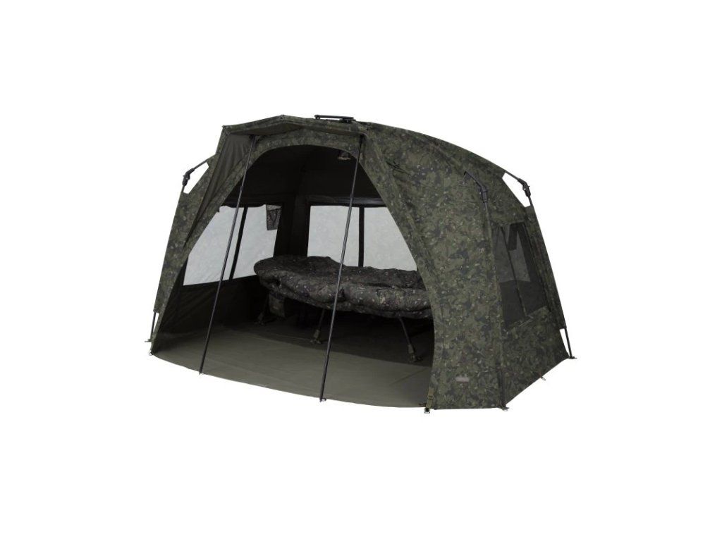 Nejrychleji postavitelný přístřešek Tempest nyní i v Camo verzi. Základem tohoto bivaku pro jednoho rybáře je proslulý rozpěrný blok, který umožňuje snadné a rychlé postavení přístřešku. Rychlost stavby byla ještě vylepšena kloubovým systémem Rapid Knuckle System, který umožňuje, aby všech pět hlavních tyčí zapadlo do správné polohy jediným pohybem. Jednoduché a bezpečné – postavit si přístřešek nebylo nikdy jednodušší! Mezi další vylepšení patří vestavěný kšilt, který minimalizuje vnikání vody do oblasti dveří, a samozřejmě si můžete prostor dveří ještě více zastínit přidáním Skull Capu. Zadní část přístřešku je rovnější než u předchůdce, čímž je dosaženo optimální rovnováhy mezi vnitřním úložným prostorem a perfektní aerodynamikou. Proudění vzduchu přístřeškem je vylepšeno pomocí technologie Adaptive Ventilation® na šesti větracích otvorech (čtyři vzadu a dva vpředu), které usnadňují proudění vzduchu, i ve chvíli, kdy prší. Aby zůstal bivak v létě ještě chladnější, lze čtyři kryty zadních větracích otvorů zavěsit tak, aby se vytvořily stinné oblasti, které ve spolupráci se Skull Capem mohou snížit vnitřní teplotu i o několik stupňů. V bivaku naleznete i čtyři vnitřní kapsy, dvě na každé straně a dvě vpředu. Ty vpředu mají navíc poutko na zavěšení například bundy nebo příposlechu. Vlastnosti produktu nejrychleji postavitelný přístřešek na trhu pokročilý kompozitní, rozpěrný blok GRP: lehký, super pevný a odolný proti namáhání kloubový systém Rapid Knuckle System umožňuje snadnou montáž a obsahuje vestavěné úchyty pro Skull Cap vylepšená látka Aquatexx‚ pyšnící se vícevrstvým prodyšným systémem s vodním sloupcem 25 000 mm a zatemňovacím pigmentem pro snížení pronikání světla a tepla adaptivní ventilace pro snížení kondenzace vodních par kryty ventilačních otvorů lze připevnit pomocí popruhů Cool Guys (k dispozici samostatně) pro maximalizaci proudění vzduchu a zvětšení oblasti stínu integrované čelo minimalizuje pronikání vody do oblasti dveří rovnější zadní část bivaku pro maximalizaci vnitřního úložného prostoru vysoký profil nabízí spoustu místa pro pohyb v bivaku dva magnetické popruhy pro pruty čtyři vnitřní síťové kapsy dva vnitřní věšáky dodáváno s velkou taškou NXG, podlážkou, napínacím popruhem, průhledným předním panelem, dvěma vidličkami Quicksticks a T-kolíky Technické parametry Materiál: Aquatexx™ camo Vodní sloupec: 25000 mm Hmotnost: 9,4 kg (plus kolíky, vidličky Quick Sticks a taška = 5,2 kg) / celková hmotnost: 14,6 kg Vnitřní rozměry (V x Š x H): 145×260×220 cm Vnější rozměry (V x Š x H): 150×265×225 cm Transportní rozměr: 129 (D) x 24 Ø cm Bivak nabízíme v klasické (zelené) nebo camo verzi.Doplňkové parametry