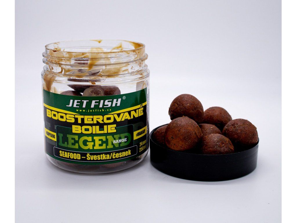 Boosterované boilie Legend Range 250ml - 24mm : SEAFOOD - ŠVESTKA / ČESNEK - JET FISH