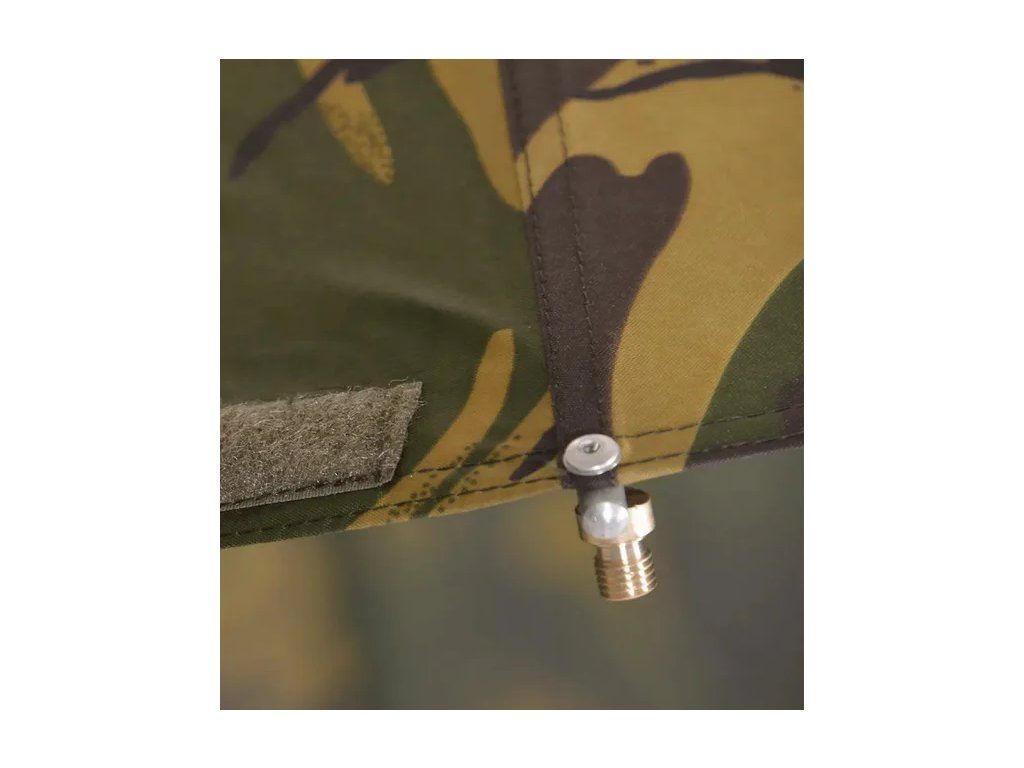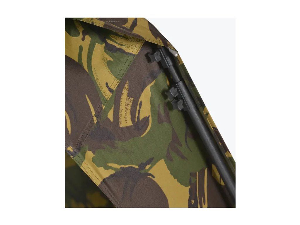Lehké a kompaktní brolly v kamuflážovém provedení (DPM), které při transportu zabírá minimum místa. Díky legendárnímu Aquatexx materiálu, rychle rozložitelnému rámu (140cm), práškované oceli a unikátnímu vzhledu je brolly opravdovou symfonií na pomezí prostoru a výkonu. Je to spolehlivý voják s typickým provedením kvality Aqua Products. Vlastnosti produktu vyrobeno z Aquatexx materiálu rychle rozložitelný rám (140cm) práškovaná ocel unikátní vzhled systém devíti žeber popruhy pro úchyt prutů dodávané s přepravním obalem kompatibilní s přehozem nutno dokoupit 2× bouřkové tyče – 24" Quick Sticks Technické specifikace Rozměry (půdorys): 248 × 185 cm Výška: 135 cm Hmotnost: 5,2 kg (6,8 kg včetně kolíků a obalu) Mějte prosím na paměti, že pro maximální funkčnost se k brolly doporučuje použít bouřkové tyče 24" Quick Sticks (dodávané samostatně) a 48“ Quick Sticks (dodávané taktéž samostatně), pro extra stabilitu v tom nejhorším počasí.Doplňkové parametry