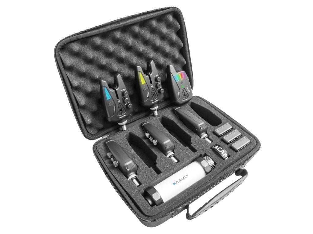 České signalizátory záběru FLACARP X8 vycházejí z oblíbeného modelu X7 a přidávají množství užitečných funkcí. Kromě osvědčeného designu, velmi vysoké mechanické odolnosti, precizního snímače odvíjení vlasce s potahem již od 1,5mm v obou směrech a v neposlední řadě napájení běžnými tužkovými články AAA, byly přidány nové funkce_ režim potlačení falešných poplachů (např. při rybolovu v nepříznivém počasí nebo ze člunu), noční poziční světlo na swingeru, širší rozsah regulace délky potahu vlasce od 1,5mm až do 30cm, vylepšený zvuk padáku pro jednoznačné rozlišení směru odvíjení vlasce, širší rozsah nastavení barev LED a další vylepšení.