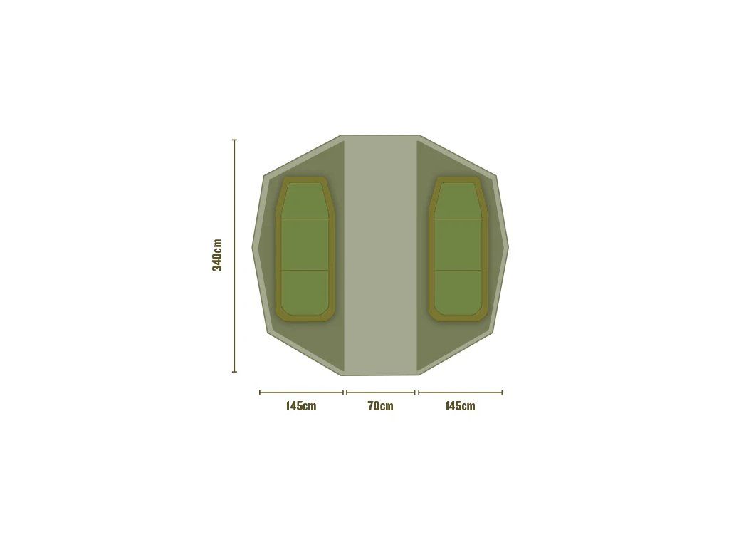 Dvojdílná odepínací ložnice pro Bivak Superdome Bivvy, která vytváří dvě plně oddělené místnosti uvnitř bivaku. Vlastnosti produktu zakrytá chodbička mezi jednotlivými kapslemi napříč bivakem přeměňují Superdome Bivvy na dvoustěnný přístřešek, což snižuje kondenzaci a více zadržuje teplo přišitá podlážka, přes kterou se nedostanou hlodavci a další nechtění hosté úložné vaky ve stěnách kapsle, které nabízí ještě více úložného prostoru prodyšné stěny z Polyesteru perfektně pasuje a není potřeba přidělávat kolíky Ložnice je dodávána s přenosnou taškou na zip. Technické parametry Materiál: 210D polyester Rozměry: 145 x 340 x 185 cm Hmotnost: 5,3 kgDoplňkové parametry