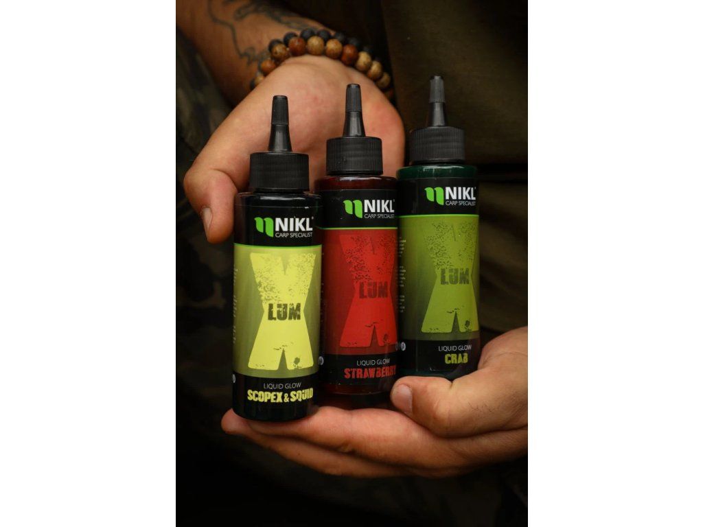Maximální účinnost, skvělé výsledky! LUM-X je skvělý atraktor sloužící hlavně jako booster, nebo jako dip. Je vyroben tak, aby se velmi rychle vsáknul do boilies, pelet, PVA punčošek, rohlíkového boilies, těst, pufů a extrud, nebo do krmítkové směsi. LUM-X je atraktivní kapalina, která ve vodě vytváří intenzivní, barevný zákal. Důležitější však je, ze uvolňující a rozptylující se mrak, do vodního prostředí rozšiřuje nejen příjemné vůně, ale i chutě. Ryby velmi intenzivně LUM-X vnímají, díky chuťovým složkám se u nich instinktivně spouští chuť k jídlu a začínají vyhledávat v okolí cokoliv k snědku. LUM-X dokáže provonět celý vodní sloupec a pomalu jím propadává ke dnu. Skvěle se tak hodí i při lovu na zig-rig. Namočte nástrahu a při krmení, přidejte vždy pár kapek do rakety – vaše krmné místo bude maximálně atraktivní! Nejraději však používáme LUM-X pro zatraktivňování PVA punčošek, anebo jako dip plovoucích i potápivých nástrah. Po dopadu na dno, se LUM-X pomalu uvolňuje do okolního prostředí a velmi rychle přiláká ryby ke krmení. Proplouvající ryby budou navíc, svým vířením nadále rozptylovat LUM-X do okolí a tím tak lákat další a další ryby k příjmu potravy. Vyzkoušejte LUM-X a sami poznáte jeho sílu a účinnost! Záběrů bude více a přijdou mnohem rychleji než bez jeho použití. Nabízíme ve 2 barvách a 16 příchutích. Příchutě v červené barvě: Candy Sweet Gigantica Giga Squid Chilli Peach Kill Krill Krill Berry Strawberry Příchutě ve žluto-zelené barvě: Citrus Corn Crab Devill Krill Garlic Mango Pineapple Sweet Honey Scopex & SquidDoplňkové parametry