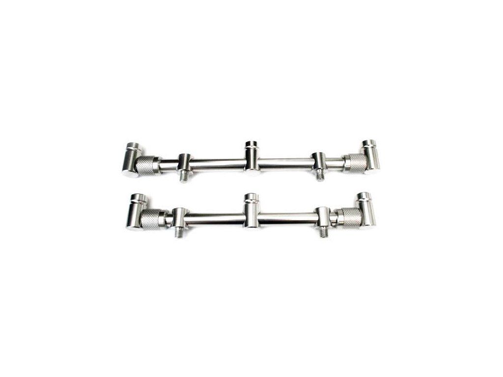 Špičkové elegantní hrazdy vyrobené z nerezové oceli, které zaručují bezpečné a stabilní uložení vašich prutů. Na jejich výrobu byl použit pevný nerezový materiál z UK o tloušťce 13,9 mm. V nabídce jsou hrazdy na 2, 3 i 4 pruty, pevné i výsuvné a na jednu vidličku, či na dvě, tzv. SNAG. Některé mají navíc speciální Dual Lock systém upínání, díky kterému skvěle zafixujete hlásiče i rohatinky. Balení: 2 ks