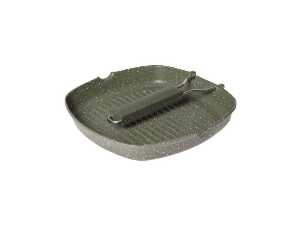 Uvařte si svá oblíbená jídla přímo na břehu s grilovací pánví Trakker Armolife Marble Griddle, která je ideální pro výrobu šťavnatých hamburgerů, prskajících klobás nebo grilovaných steaků. Pánev umožňuje vařit jídlo zdravěji díky sběrným kanálům pro odvod tuku. Základna pánve usnadňuje rovnoměrné rozložení tepla a speciální mramorovaný povlak zabraňuje přichytávání jídla, což umožňuje snadné čištění po vaření. Pánev má také skládací rukojeť pro snadnou přepravu. Vlastnosti produktu odolný, dvouvrstvý mramorovaný povlak přináší zabraňuje přichycení jídla a usnadňuje čištění sběrné kanálky pro odvod tuku tepelně odolná, skládací rukojeť vyrobeno z extra tenkého, ale pevného 3 mm hliníku základna pánve z nerezové oceli s vyraženým logem Trakker Technické parametry Rozměry (D x Š x H): 25,8×25,4×3,9 cm Hmotnost: 790 g Materiál: hliník / nerezová ocelDoplňkové parametry