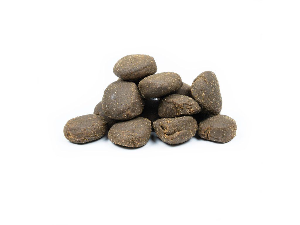 Tuňákové pelety TT Tuna Triangl 30mm jsou plné přírodních olejů a prvotřídních rybích mouček a v mnoha ohledech předčí veškeré halibutky. Jsou vyráběné pro výkrm tuňáků, ale samozřejmě jsou skvělé i na kapry, sumce, jesetery a další ryby. Jejich obrovskou výhodou je netradiční tvar, který je u ryb neokoukaný, navíc perfektně sedí na svahu nebo v proudu. Jsou pevné a dostatečně velké, ale dají se napíchnout na jehlu i bez vrtáčku a snadno tak nastražit na vlas. Na něm v teplé vodě při ataku ryb vydrží 1 až 3h, v chladné vodě nebo bez ataku ryb i déle.