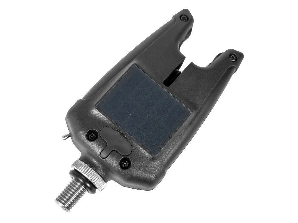 Signalizátor záběru FLACARP SOLUX se solárním nabíjením. Osvědčený design a funkce výkonného hlásiče se vším, co rybář potřebuje, navíc s integrovaným solárním panelem na zadní straně.