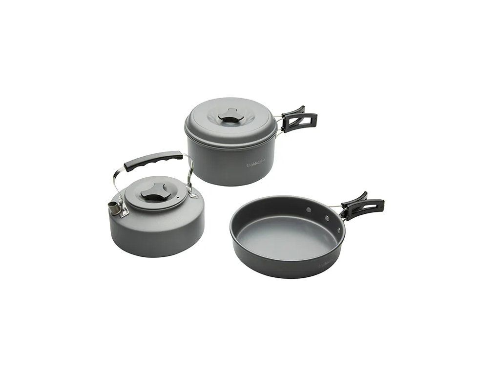 Sada nádobí Armolife Cookware Set zahrnuje hrnec s pokličkou, pánvičku a konvičku. Hodí se perfektně pro pobyt u vody. Umožní Vám připravit bezpočet pokrmů a nezabírá téměř žádné místo v tašce – to zajišťují sklápěcí, žáru odolná držadla a možnost konvičku vměstnat do hrnce a pánvičkou jej přikrýt. Celý set se vejde do obalu ze síťoviny, který je součástí balení a drží vše u sebe. Kompletní set váží pouhých 651 g. Je vyroben z lehkého hliníku, který byl eloxován, což mu dodává kromě vysoké odolnosti i elegantní, šedivé zabarvení. Vlastnosti produktu lehká a kompaktní nepřilnavá, eloxovaná vrstva sklápěcí, žáruvzdorné rukojeti dodáváno v síťovaném obalu Technické parametry Materiál: eloxovaný hliník Rozměry pánvičky: 17,7 × 3,9 cm (750 ml) Rozměry hrnce: 17,4 × 10,9 cm (1,7 l) Rozměry konvičky: 15,2 × 7,8 cm (1,1 l) Hmotnost: 651 gDoplňkové parametry