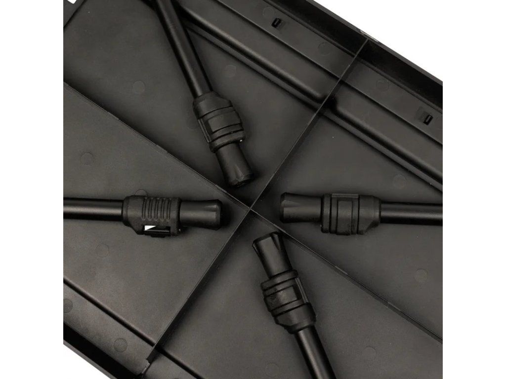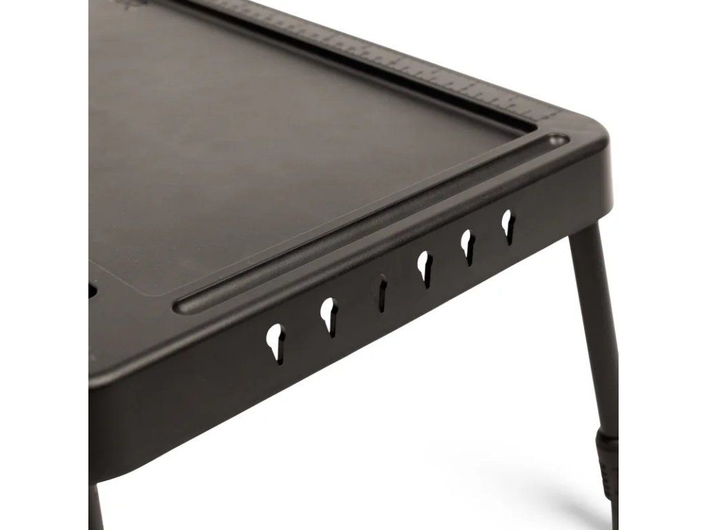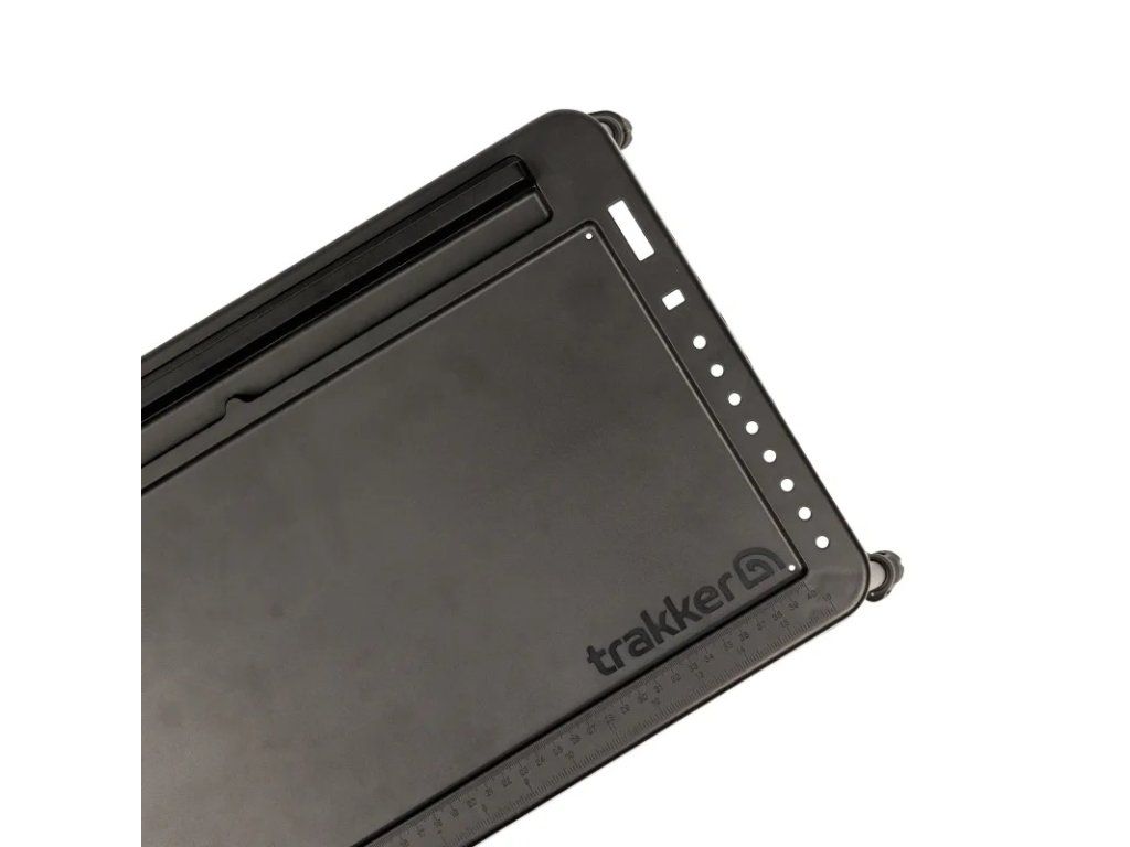 Stůl Deluxe Bivvy s hluboce zapuštěnou horní deskou umožňuje přehledně uspořádat vše, co zrovna potřebujete mít po ruce. Má skládací, nastavitelné nohy, které umožňují kompaktní uložení a vždy vám umožní vytvořit rovný povrch. Na zadní straně stolu je dlouhý otvor určený k tomu, aby podržel váš tablet nebo telefon ve vzpřímené poloze. Na pravé straně naleznete několik otvorů, navržených speciálně pro uložení nástrojů pro výrobu návazců Trakker. Obě kratší strany stolu nabízejí jednoduchý způsob uložení vašich návazců. Vlastnosti produktu zapuštěný design, který brání odkutálení předmětů na stole výřez pro uchycení telefonu nebo tabletu na zadní hraně úložný prostor pro drobné vybavení po obou stranách stolu otvory pro umístění nástrojů pro výrobu návazců rychlo uzamykatelné výklopné nohy výškově nastavitelné nohy s vačkovým zámkem Technické parametry Rozměry: 48 x 31 x 24–37 cm Transportní rozměry: 48 x 31 x 4 cm Hmotnost: 0,9 kg