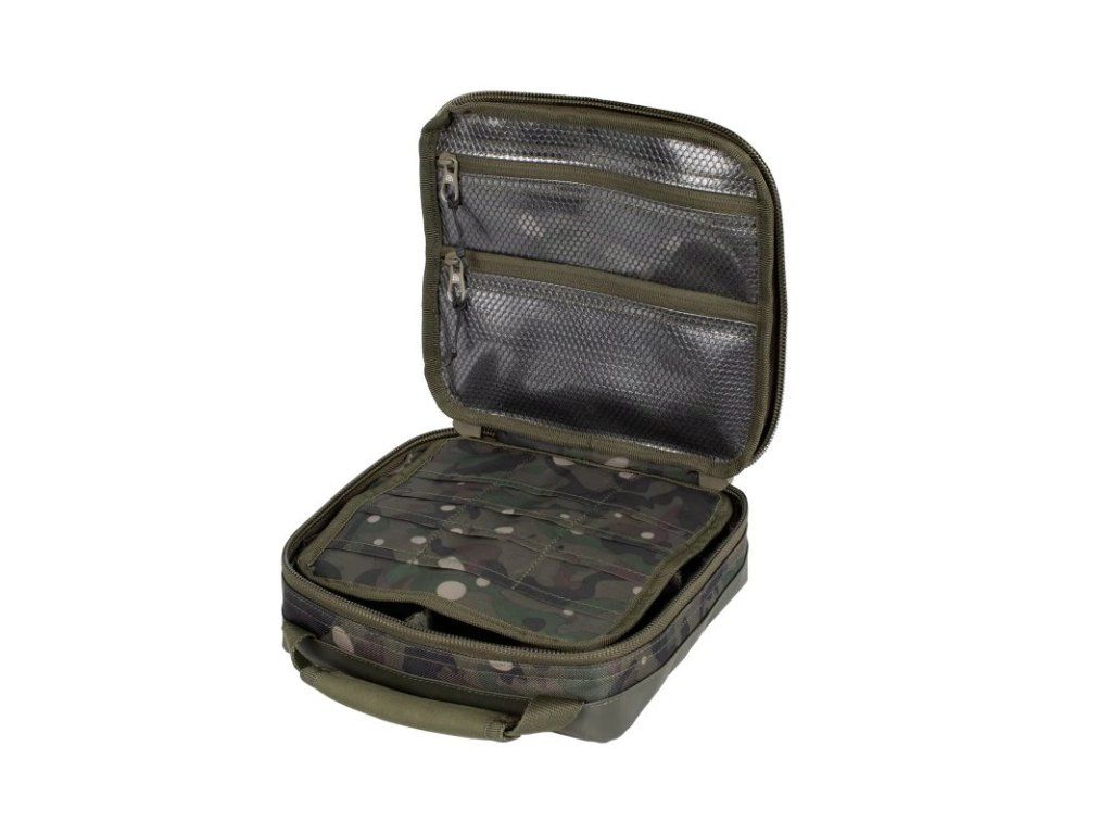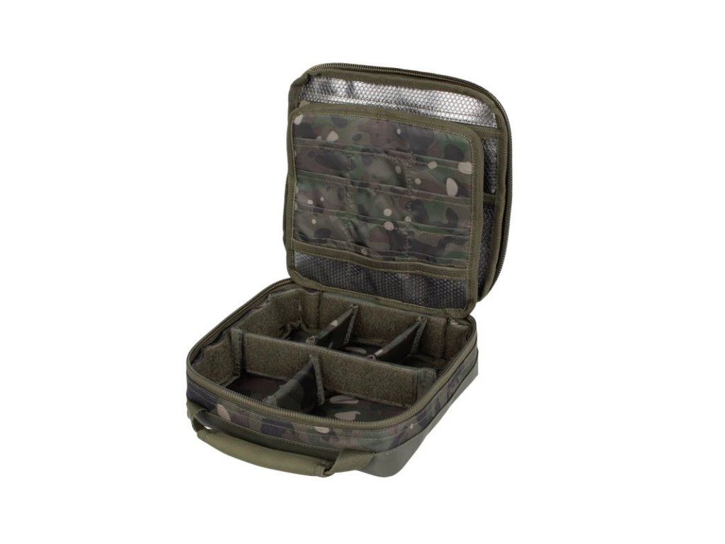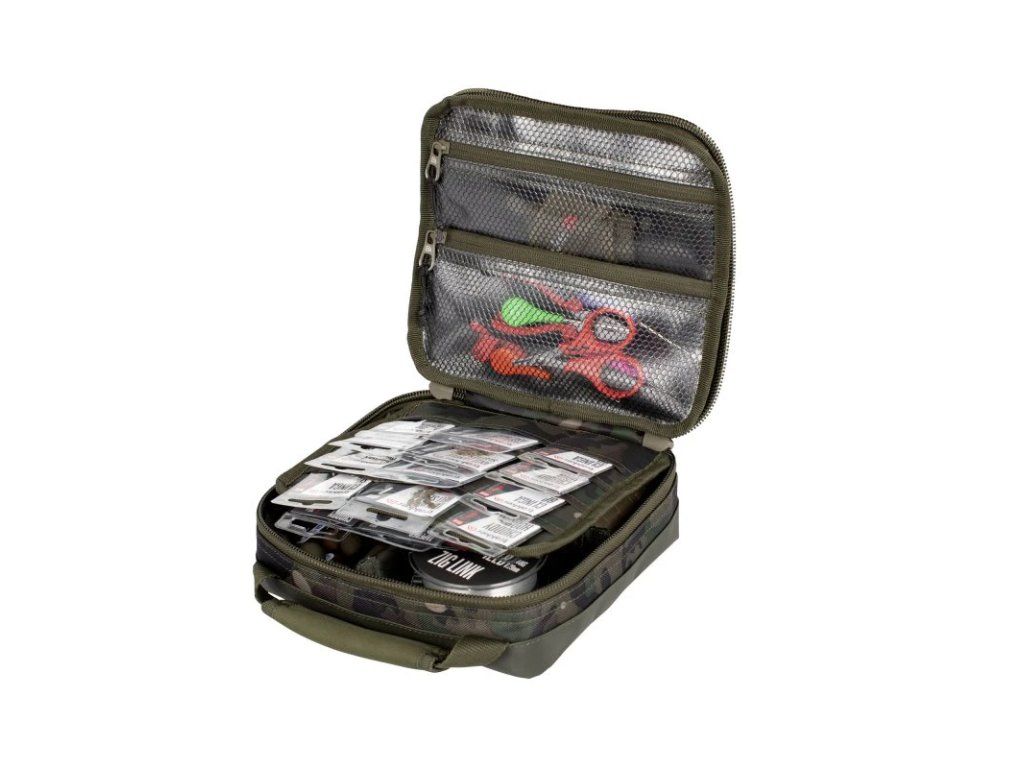 Penál určený k úhlednému a pohodlnému uložení rybářské bižuterie. NXC Tackle Bag nabízí přizpůsobitelný systém přihrádek a také velké množství kapes vhodných pro různé velikosti rybářských drobností. Tento přizpůsobitelný, velkokapacitní penál má pevnou, voděodolnou PVC základnu, vyztuženou neoprenovou rukojeť a dva zipy pro snadný přístup. Vlastnosti produktu penál pro uložení rybářské bižuterie vysoce odolný, dvojitý zip 24 kapes na centrální přepážce tři malé vnitřní kapsy z odolné síťoviny dvě vnitřní odolné síťované kapsy na zip (jedna v plné velikosti, jedna poloviční) přizpůsobitelný dělicí systém (obsahuje jednu velkou přepážku a tři malé přepážky) neoprenová rukojeť pevná, voděodolná PVC základna v camo provedení z látky n-dura Performance Technické parametry Rozměry (D x Š x V): 22×22×7 cm Hmotnost: 0,35 kg Materiál: Polyester