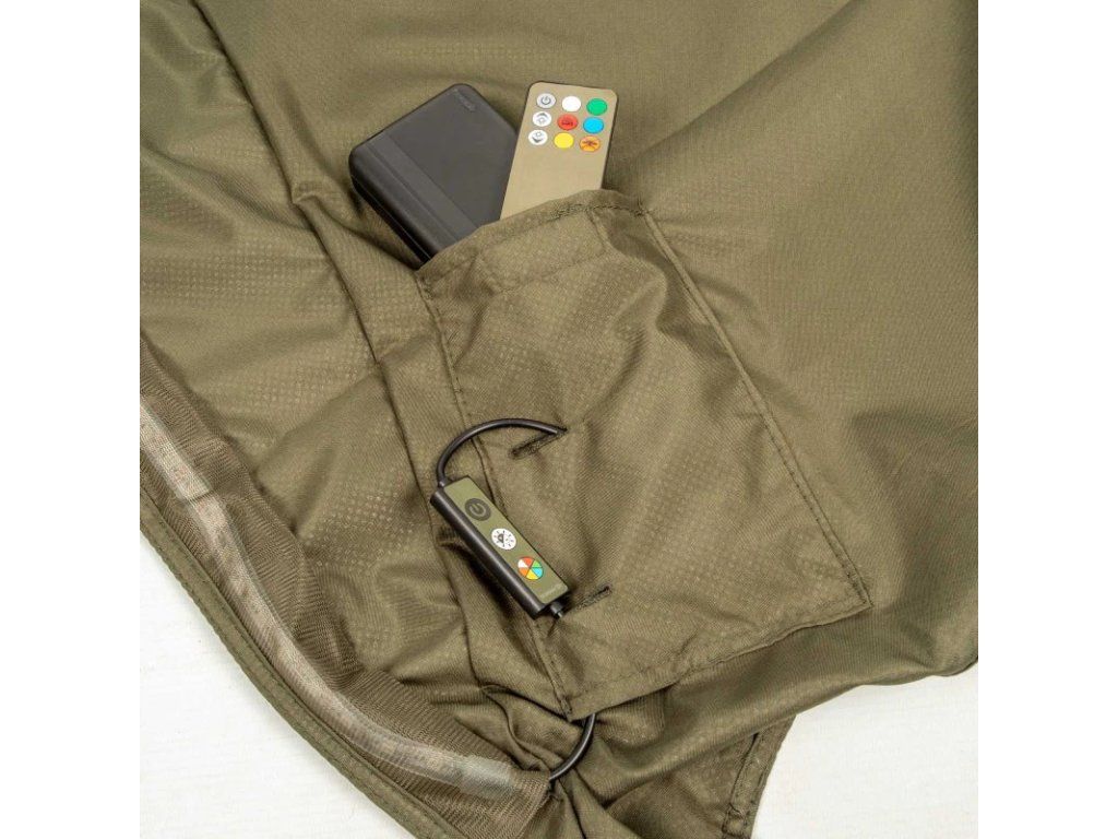 Vylepšete svůj přístřešek Tempest RS o multifunkční parní štít, který kombinuje dodatečné teplo speciální tkaniny a dálkově ovladatelné LED osvětlení. Extra dlouhý světelný pás se 171 LED diodami měnícími barvu je chytře umístěn v přední části přístřešku, aby osvětloval vaší hlavní, pracovní plochu a zároveň minimalizoval průnik světla ven před přístřešek a na vodní hladinu. Světelný pás nabízí šest barevných možností a šest nastavení jasu, takže si můžete přizpůsobit osvětlení podle svých potřeb. Všechna nastavení lze pohodlně upravovat přímo z lehátka díky dodávanému dálkovému ovládání. Alternativně lze stejná nastavení ovládat pomocí integrovaného, ovládacího modulu. Jednotka je napájena dodávanou baterií s kapacitou 16 000 mAh, která také slouží jako nouzová powerbanka pro telefon. Parní štít je vyroben z prodyšné, polyesterové tkaniny se speciálním stříbrným povrchem odrážejícím teplo. Zatímco Skull Cap přináší především stín, aby vás v létě ochladil, tento stříbrný povrch pomáhá udržovat teplo v zimních měsících, čímž vytváří celoroční přístřešek, který vás ochrání před nepříznivým počasím. Vlastnosti produktu přizpůsobitelné osvětlení 171 LED diod se 6 barevnými možnostmi a 6 úrovněmi jasu balení obsahuje powerbanku s kapacitou 16 000 mAh (16k) prodyšná polyesterová tkanina, která snižuje kondenzaci termoreflexní technologie pomáhá udržet teplo během zimních měsíců snadná jednorázová instalace, může zůstat připevněna k vašemu přístřešku dálkové ovládání a možnost ovládání pomocí kabelu vytváří další úložný prostor určeno pro použití s Tempest RS 200 (TR201430) a Tempest RS 200 Camo (TR200560) Technické parametry Vapour Shield Materiál: 100 % polyester Napájení: Minimálně 3A @4,5V Extra dlouhý napájecí kabel, který slouží také jako alternativní zdroj napájení (Minimálně 3A @4,5V) LED pásek IP67 Technické parametry Power Pack Kapacita: 16000 mAh/3,7V (59,2Wh) 2× USB výstup 5V-3A 1× USB výstup/vstup 5V-3A Micro-USB vstup 5V-2ADoplňkové parametry